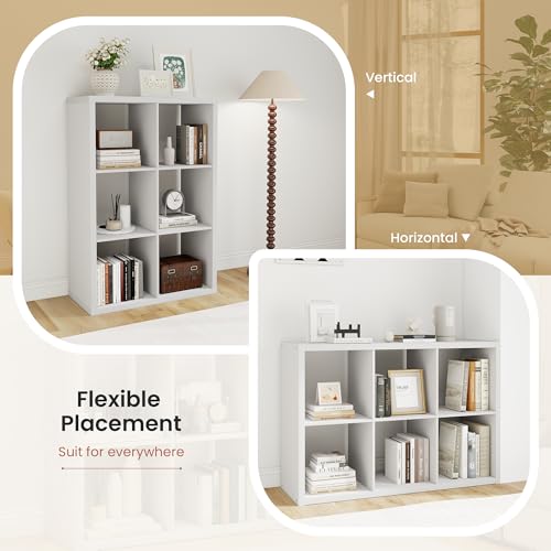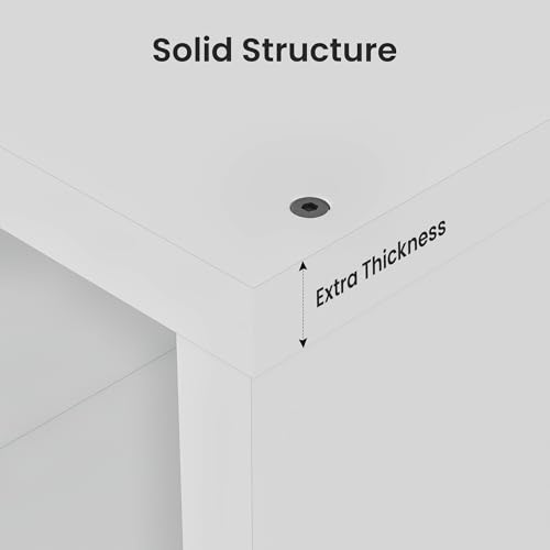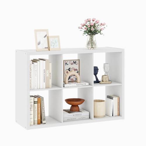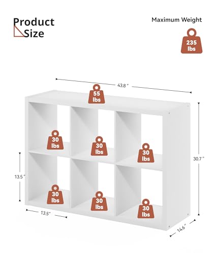 VPSMAT - منظم تخزين 6 مكعبات بيضاء من في بي اس مات، منظم تخزين 13 انش، رف خشبي عمودي للكتب مع 6 ارفف مكعبة لغرفة النوم وغرفة المعيشة، 14.6 × 43.8 × 30.7، ابيض