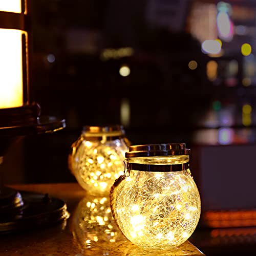 VPWHEN - فانوس شمسي خارجي معلق مزود بـ30 لمبة بإضاءة ليد مقاوم للماء إضاءة شمسية للحديقة ديكور للفناء الخلفي إضاءة خارجية زخرفية من VPWHEN، مجموعة من قطعتين