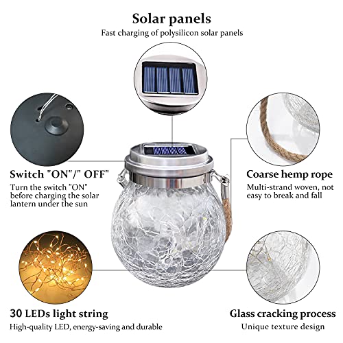 - فانوس خارجي يعمل بالكاقة الشمسية: فانوسنا الشمسي يعتمد على تصميم زجاج محفور فريد من نوعه، يعمل على نشر مصدر الضوء. حبل تعليق كتان كلاسيكي من الفولاذ المقاوم للصدأ متين بتصميم عتيق، ضوء أصفر دافئ رومانسي يحتوي على 30 لمبة بإضاءة ليد، يبعث ضوءًا جميلًا وناعمًا يخلق أجواءً من الاسترخاء والرومانسية والاحتفال.