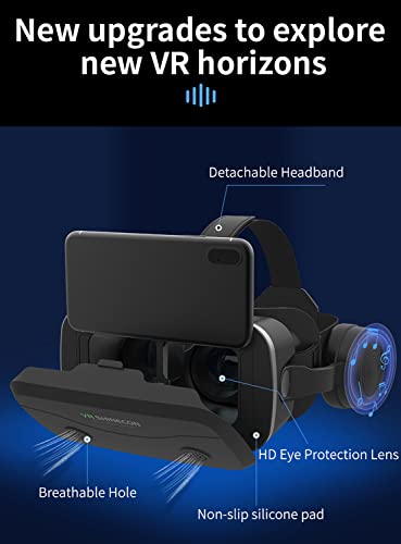 VR SHYIEON - نظارات الواقع الافتراضي للموبايلات ثلاثية الابعاد HD 120 درجة مجال رؤية 2023 جديدة متوافقة مع العاب الفيديو 4.7-7.2 بوصة اندرويد / iOS، هدية كريسماس للاطفال والكبار (لون أسود)