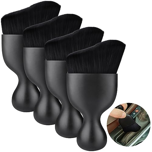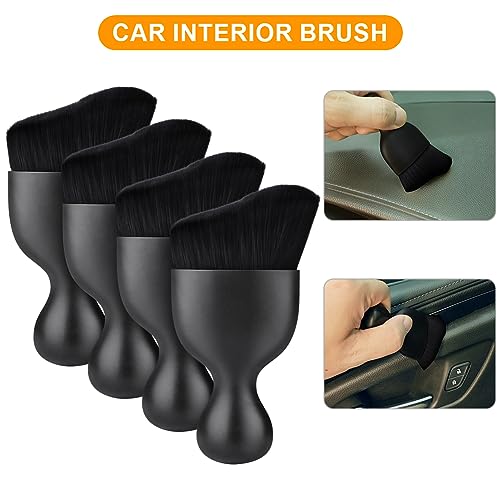 vsshe - فرشاة تنظيف داخلية للسيارة من فيشي، 4 قطع من فرشاة تنظيف الغبار بشعيرات ناعمة، اداة تنظيف داخلية للسيارة بتصميم منحني، فرش تنظيف الغبار والاوساخ لتنظيف الغبار التلقائي للسيارة والمكتب والمنزل - اسود