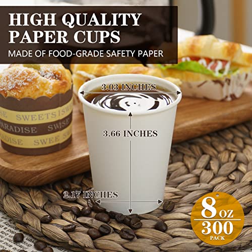 Vumdua - أكواب ورقية للاستعمال مرة واحدة سعة 220 مل من فومدوا، أكواب شرب للمشروبات الساخنة/ الباردة للمياه والعصير والشاي والاسبريسو والكورتادو، أكواب قهوة ورقية للمشروبات الساخنة، 300 قطعة (لون أبيض)