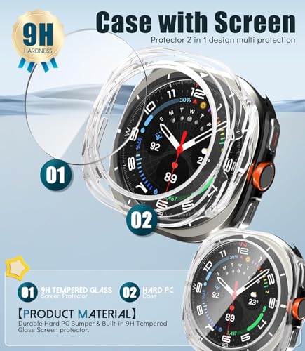 - 【مواد عالية الجودة】واقي الشاشة لهذا الجراب الواقي لساعة سامسونج جالاكسي 7 الترا 47 ملم مصنوع من زجاج مقوى بدرجة صلابة 9، قوي ومقاوم للكسر وصلب، والهيكل مصنوع من البولي كربونات عالي الجودة والقوي، وهو آمن وصديق للبيئة، مما يمنع التآكل العرضي والخدش للسكاكين والمفاتيح والأشياء الصلبة الأخرى.