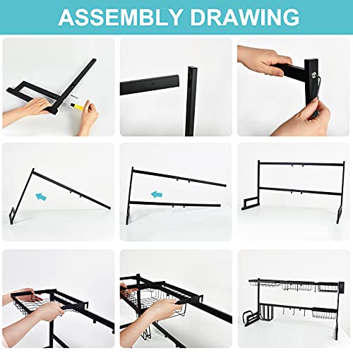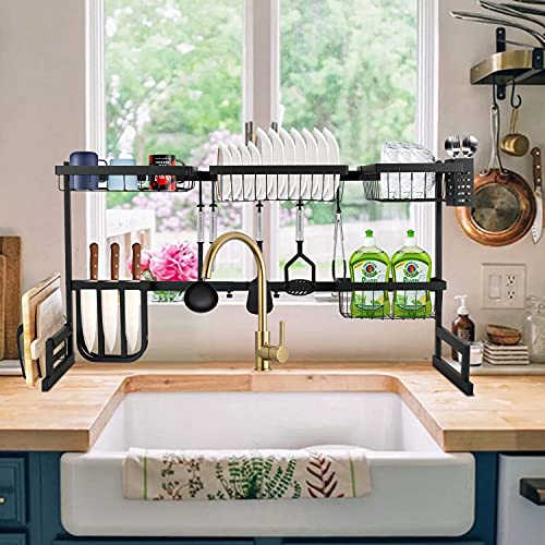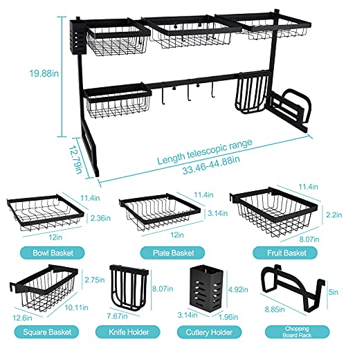 Spaceshoop - رف تجفيف اطباق يوضع فوق الحوض كبير بطول قابل للتعديل منظم للمطبخ بحجم مدمج موفر للمساحة بسعة كبيرة مع 7 خطافات 32.4 بوصة ≤ حجم 40.5 من فوزفوف معدن أسود