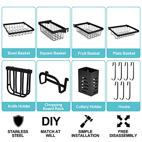 - 👍【منظم صغير متعدد الوظائف】- يتضمن رف تجفيف الأطباق فوق الحوض رف أطباق ورف وعاء واحد وسلة فاكهة وسلة أطباق وحامل سكين ورف لوح تقطيع وحامل أدوات مائدة و7 خطافات. يمكن تعديل جميع هذه الأجزاء وإزالتها وبالتالي يمكنك صنعها بنفسك وفقًا لتفضيلاتك. تم تصميم الوحدات المتحركة بفتحة بطاقة مجوفة يمكن فكها وقابلة للغسل.