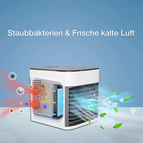 - 【مكيف هواء متنقل 4 في 1】يحتوي مبرد الهواء التبخيري على وظائف 4 في 1 للتبريد والترطيب وتنقية الهواء، مما يمنع صعوبة تجفيف الهواء الداخلي الناتج عن مروحة تكييف الهواء العادية بعد ساعات طويلة من العمل.