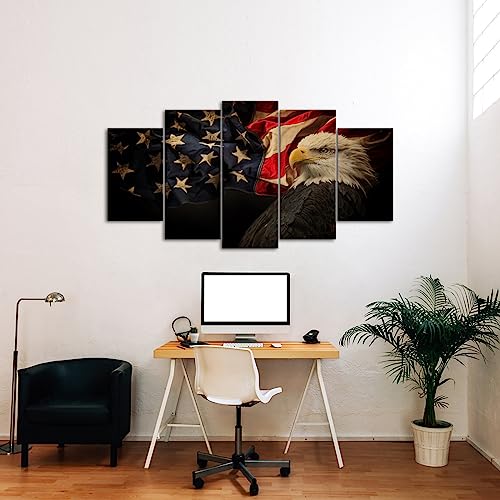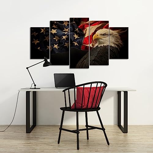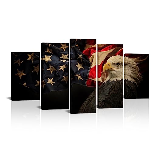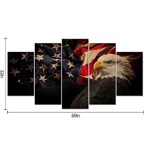 VVOVV Wall Decor - تابلوه كانفس حائط بتصميم فني وطني عصري على شكل علم امريكا مزين بنسر جامح لتزيين غرف المنزل، مقاس 60×32 بوصة، متعدد الألوان