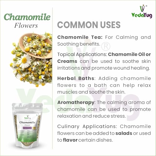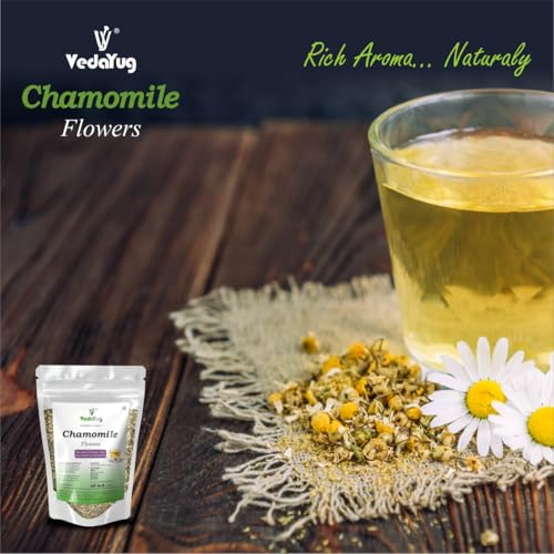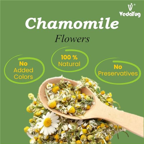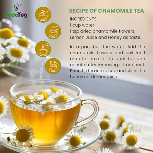 VY VedaYug - شاي زهرة البابونج من في فيداياج، 30 جرام | يحتوي على براعم زهرة البابونج الكاملة النقية | شاي عشبي لتعزيز النوم، شاي خالي من الكافيين لتخفيف التوتر في كيس بسوستة، 30 جرام