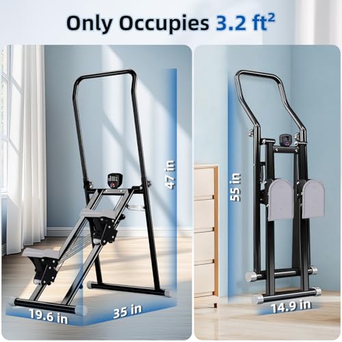 Vyrelis - سلم ستير ماستر من فيريليس مع 3 مستويات مقاومة قابلة للتعديل، الة تسلق عمودية قابلة للطي للتمرين في صالة الالعاب الرياضية المنزلية، مقود ودواسات قابلة للتعديل