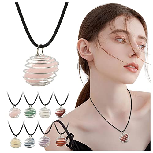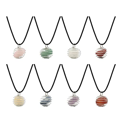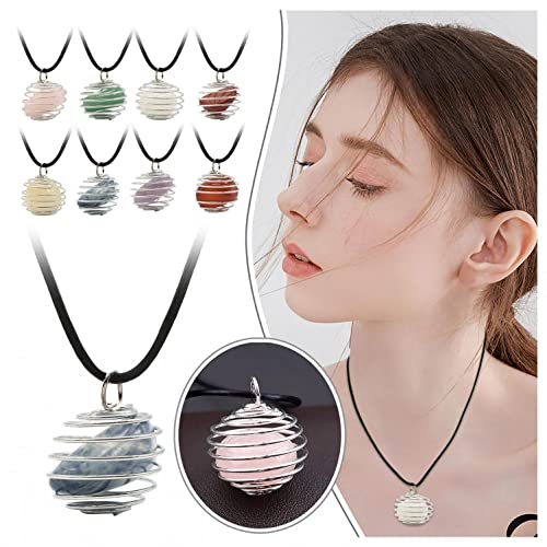 Vzdsddef - عقد مطعم بحجر كريستال استشفائي من فيزديف، عقد من حجر الشاكرا والاحجار الكريمة، دلاية على شكل قفص من خرز دائري وحامل من الستيل الحلزوني، هدايا مجوهرات للبنات والزوجة والام، MH3069