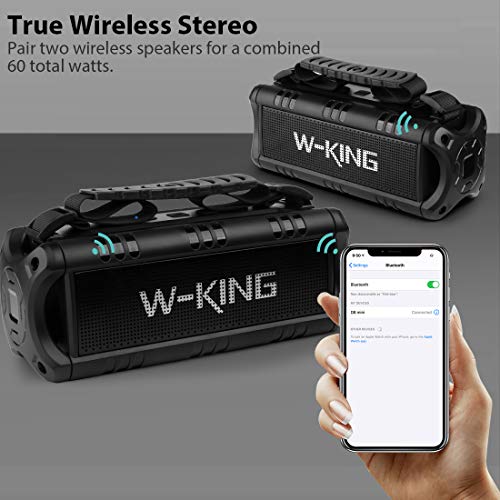 W-KING - مكبر صوت بلوتوث قوي 30 وات، مكبر صوت قوي محمول بلوتوث مع خاصية الاتصال قريب المدى مع وقت تشغيل 24 ساعة لمواقع البناء مع بطاقة TF، USB، AUX من دبليو كينج