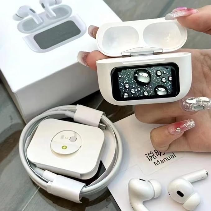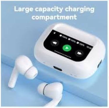 Generic - سماعات اذن لاسلكية ذكية تعمل باللمس من دبليو اند او 2، سماعات بلوتوث بخاصية الغاء الضوضاء ايه ان سي، صوت هاي فاي ممتاز، سماعات داخل الاذن مع علبة شحن وميكروفون - ابيض