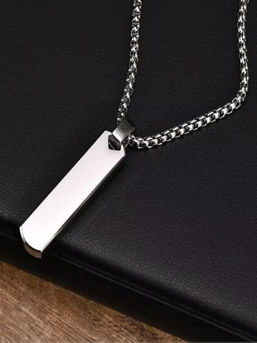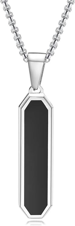 Generic - قلادة بدلاية على شكل هندسي من الستانلس ستيل بلون اسود وفضي للرجال من دبليو اس جوليري، هدية للذكرى السنوية وعيد الحب للرجال والاولاد والزوج والصديق، مقاس M، بدون احجار كريمة