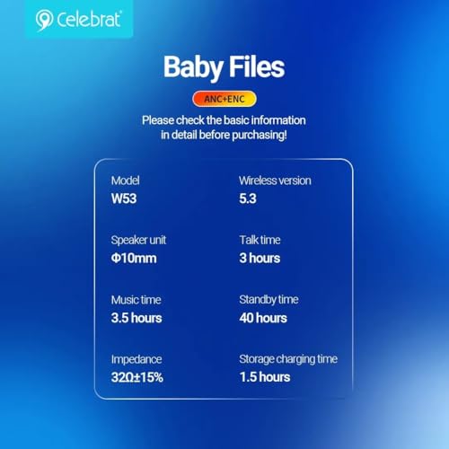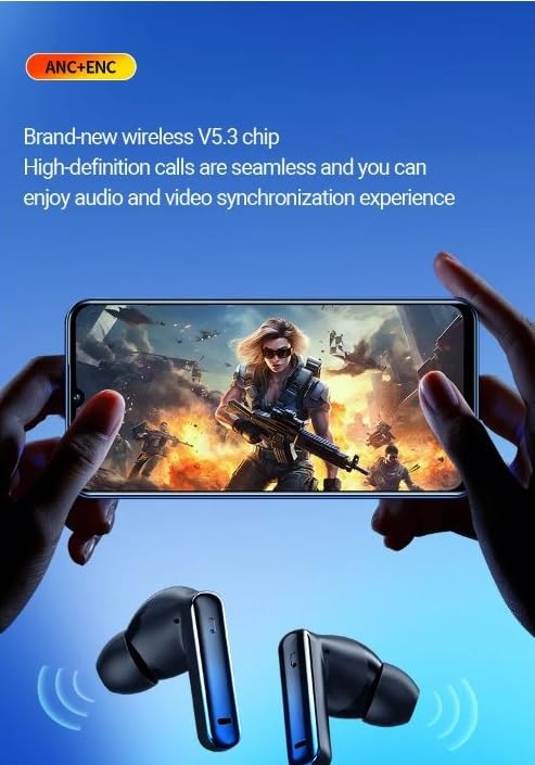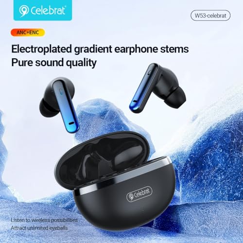 Generic - سماعة W53 بلوتوث بصوت HiFi ستيريو وعزل ضوضاء ANC+ENC -علبة شحن 300mAh –تشغيل حتي 3 ساعات-اسود