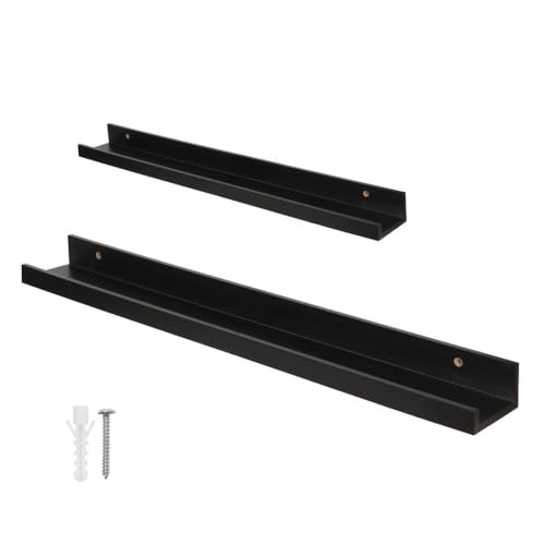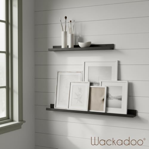 Wackadoo - حامل صور اسود من واكادو، مجموعة من قطعتين من الخشب، 70 سم و110 سم، رفوف صور للجدار، ابيض، رف حائط خشبي اف اس سي، رف عائم