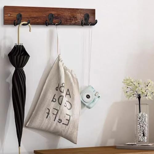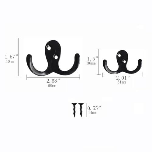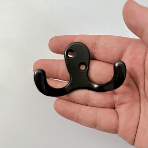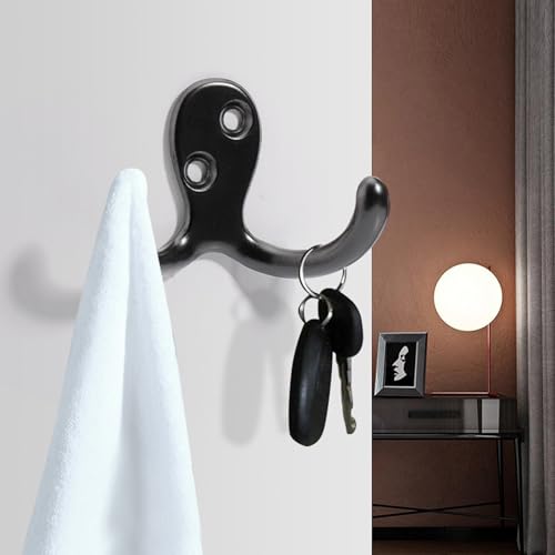Wacnune - 4 قطع من خطافات المعاطف من واكنون، خطاف حائط معدني مزدوج الشوكة شديد التحمل مع 8 براغي، يستخدم لتعليق المناشف والجاكيتات والحقائب والقبعات - اسود (صغير)