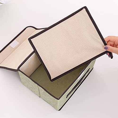 WADC - صندوق غير منسوج قماشي قابل للطي مضاد للغبار مع غطاء ومقبض لتنظيم الاغراض الصغيرة والملابس والالعاب والكتب (لون اخضر)، من وودك