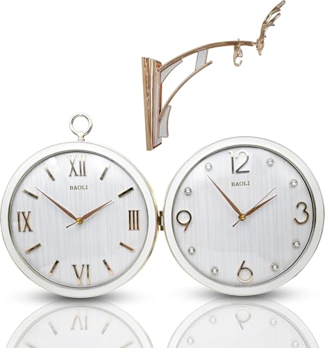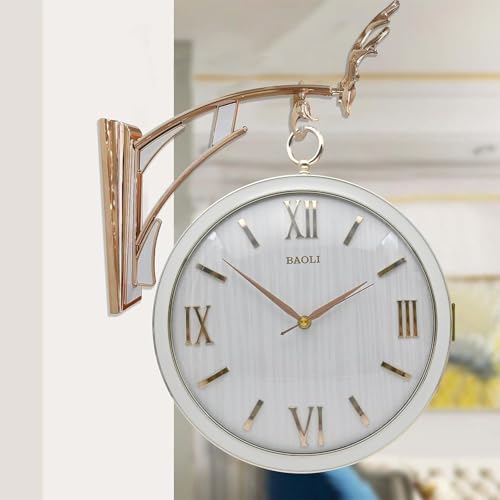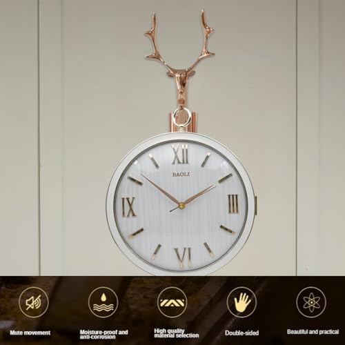 Egypt Valley Import & Export - ساعة حائط مزدوجة الجوانب بتصميم من شركة وادي مصر الاستيراد والتصدير - ارتق بمساحتك مع الرقي المستوحى الغزلان وساعة بحركة لف وأرقام رومانية أبيض بلاستيك تناظري