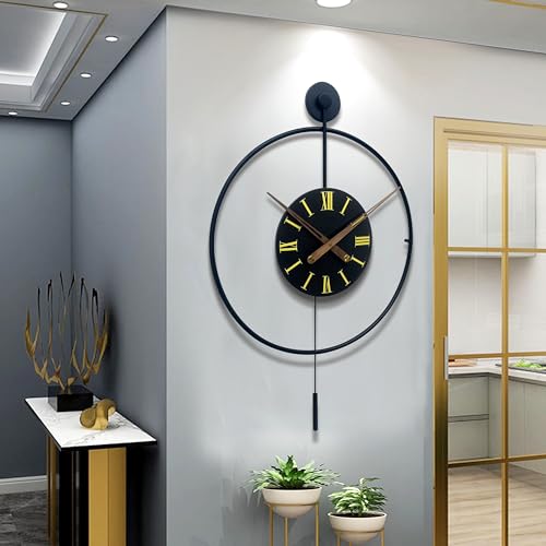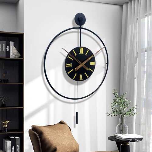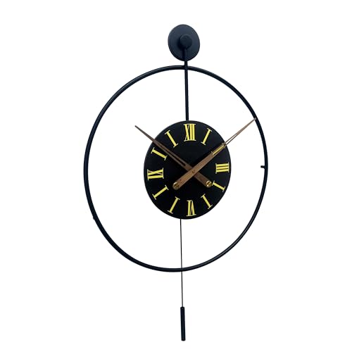 Egypt Valley Import & Export - ساعة حائط معدن عصرية من وادي مصر الاستيراد والتصدير لديكور غرفة المعيشة لا تصدر دقات مع مؤشرات من الخشب لغرفة النوم والمكتب والمطبخ، تناظري مقاس 50*80 سم اسود
