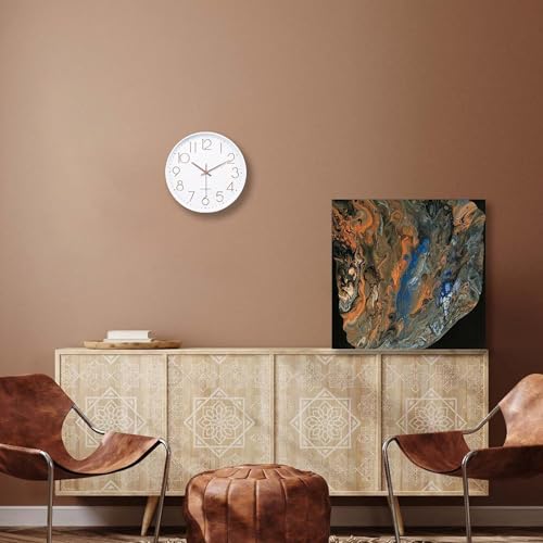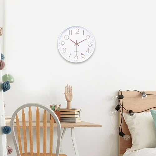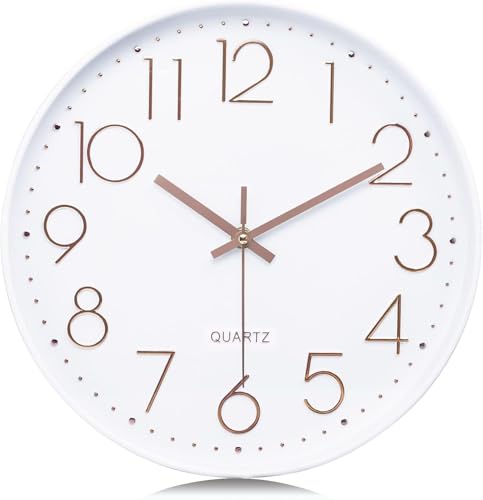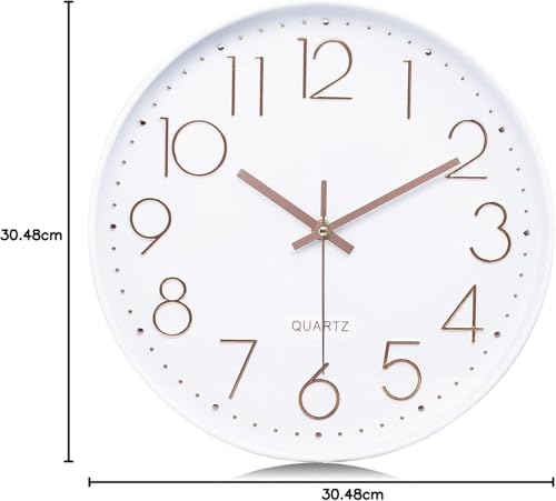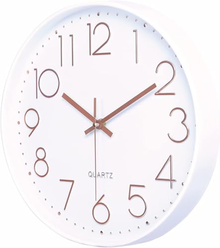 - تصميم كلاسيكي بسيط: إطار أبيض وعقارب ذهبية وردية وأرقام عربية ثلاثية الأبعاد سهلة القراءة على المينا البيضاء توفر مظهرًا عصريًا وأنيقًا. تعمل بشكل مثالي مع الأثاث المعاصر والكلاسيكي والبسيط.
