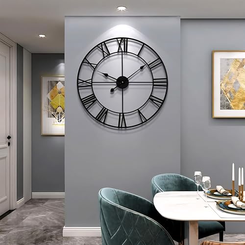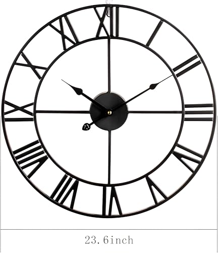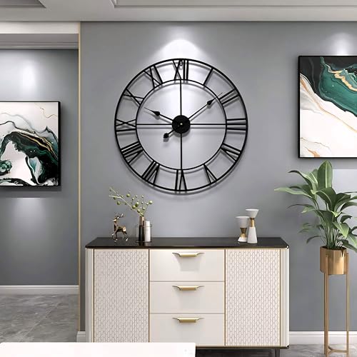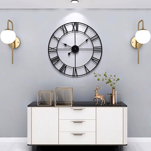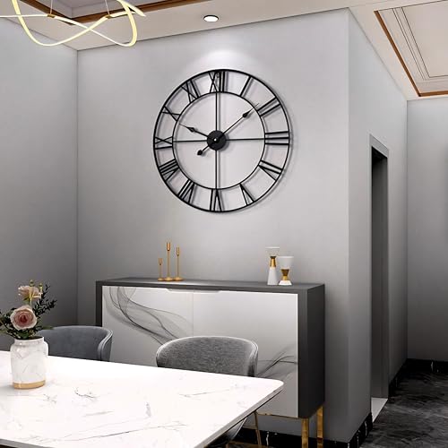 - 【ساعة صناعية】ساعة معدنية كلاسيكية كبيرة بتصميم مجوف، إطار ساعة الحائط مصنوع يدويًا من الحديد الصلب، والمواد عالية الجودة تضمن المتانة والمظهر الكلاسيكي لساعة الحائط الرومانية.