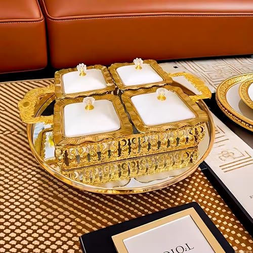 Egypt Valley Import & Export - مقسمة تسالي بتصميم فاخر من وادي مصر الاستيراد والتصدير مقسم من السيراميك لتقديم مزيج من المكسرات والشوكولاتة مكون من 4 أقسام