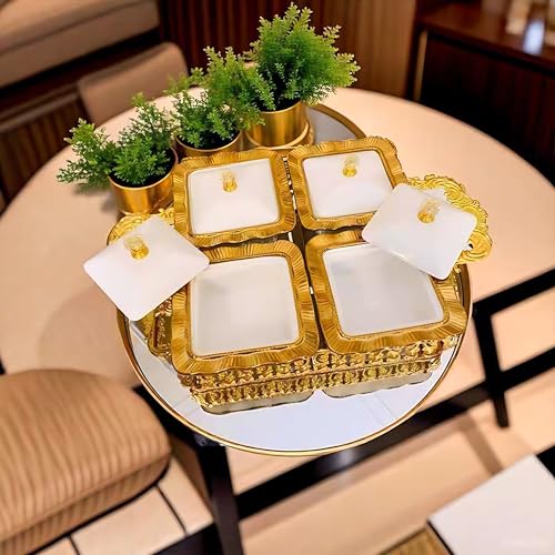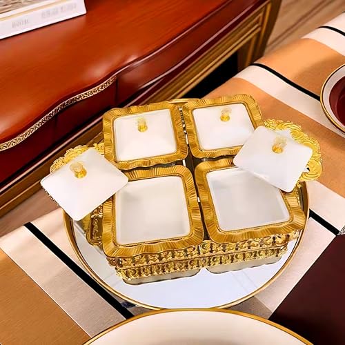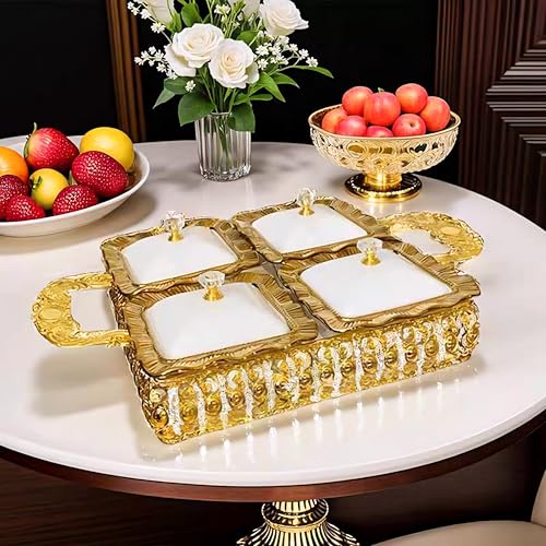 - تصميم أنيق: مقسمة تسالي تقديم من السيراميك الفاخر بتصميم 4 أقسام، مثالي لعرض وتقديم مجموعة متنوعة من المكسرات والشوكولاتة والحلويات.