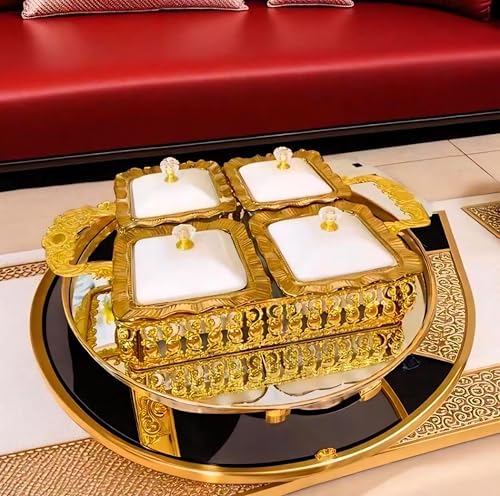 - سعة طبق التقديم: يتميز بأقسام تخزين كبيرة تستوعب كميات كبيرة من الفستق واللوز والشوكولاتة وغيرها من الحلويات.