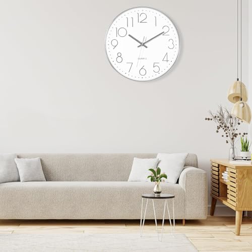 - سهل التنظيف: ساعة حائط هادئة مع غطاء زجاجي أمامي مسطح تضمن رؤية مثالية وتحافظ على الغبار بعيدًا عن المينا.