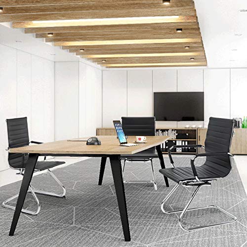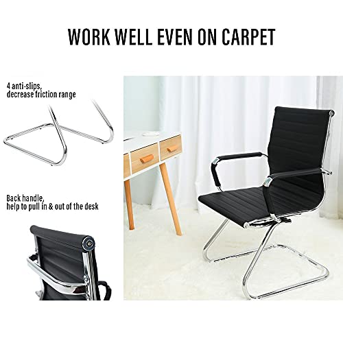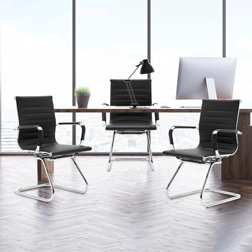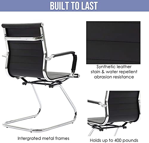 WAHSON OFFICE CHAIRS - مجموعة كراسي مكتب للاجتماعات مكونة من قطعتين من الجلد الصناعي من واهسون، كرسي للزوار مع إطار من الكروم للضيوف (قطعتان، لون أسود)