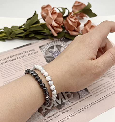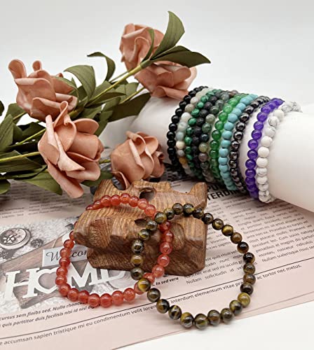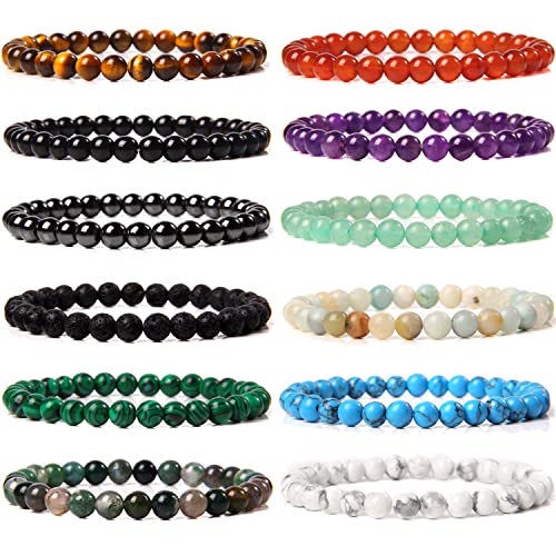 WAINIS - واينيس 12 قطعة من اساور خرز الاحجار الكريمة شبه الثمينة للرجال والنساء سوار دائري حجر الكريستال مجموعة قابلة للتمدد للجنسين 7 انش احجار كريمة اونيكس