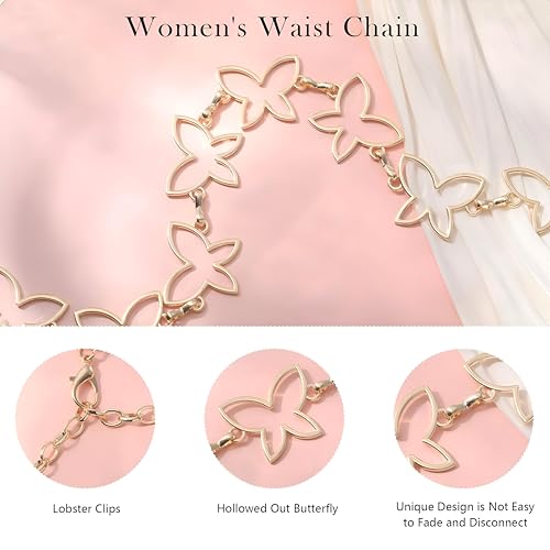 Generic - اكسسوار حزام الخصر - سلسلة معدنية طويلة قابلة للتعديل بتصميم كلاسيكي مخرم لفساتين النساء وسلسلة الجسم العصرية