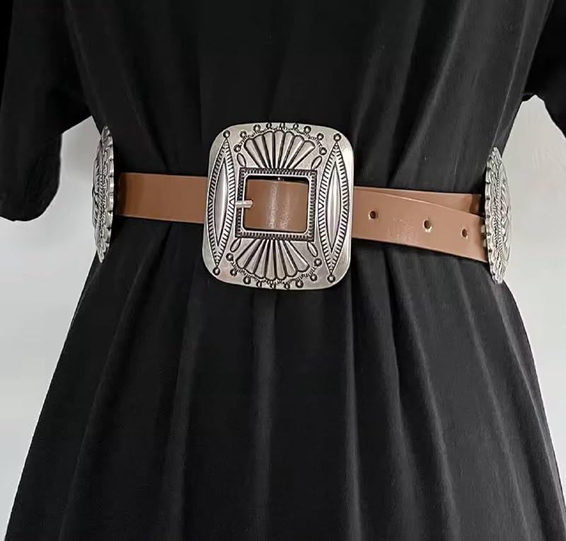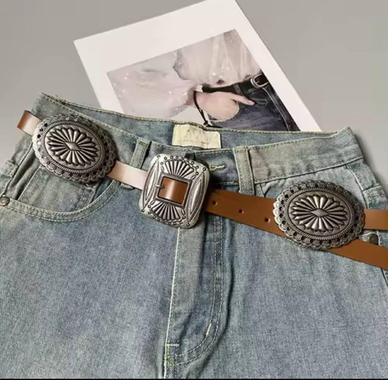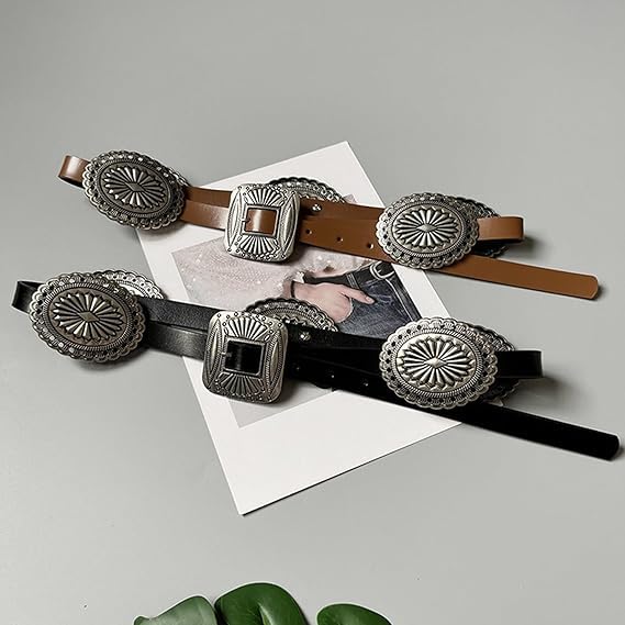 Generic - حزام خصر مع ابزيم زهور منحوتة، حزام من البولي يوريثين قابل للتعديل، حزام خصر للنساء للمعاطف والتنانير والجينز والملابس الغربية