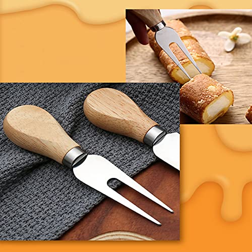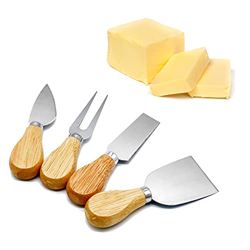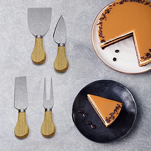 WAKAKO - مجموعة سكاكين الجبن من 4 قطع، أداة توزيع الجبن من الفولاذ المقاوم للصدأ بمقابض خشبية، شوكة وأداة تقطيع وفرد وتوزيع الجبن لأعياد الميلاد والزفاف وحفلات ما قبل الزفاف والكريسماس من واكاكو