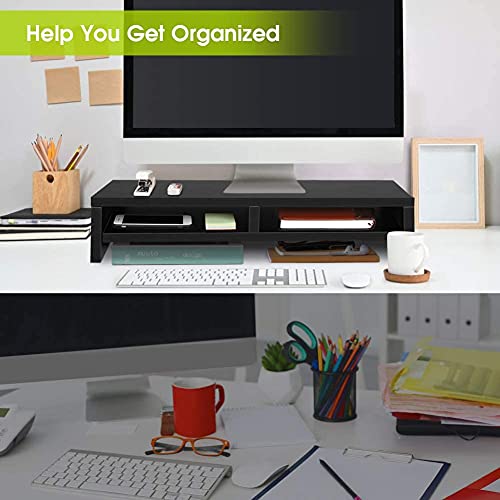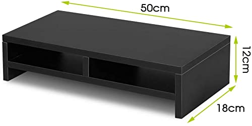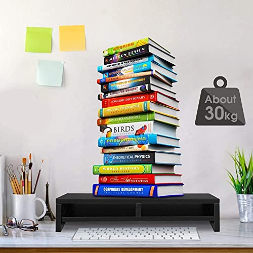Wakects - واكيكتس حامل شاشة مكتبي، حامل شاشة خشبي بمستويين، حامل خشبي لشاشة اللاب توب والكمبيوتر مع منظم، اسود، 50 × 20 × 11.7 سم