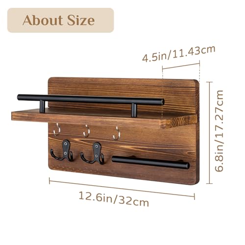 - حجم مناسب وتصميم هيكلي - يبلغ مقاس حامل سلسلة مفاتيح السيارة 12.6 انش طول × 7 انش طول × 5 انش عرض. رف عائم كبير مع قضيب، 3 خطافات فردية لامعة من الألومنيوم، 2 خطاف معدني أسود عالي الجودة وقضيب صغير رائع يجتمعان في تصميم ذكي ومنطقي. اكتشف الوظائف القصوى للرفوف الغربية المدمجة من خلال تحرير يديك.