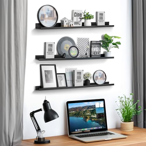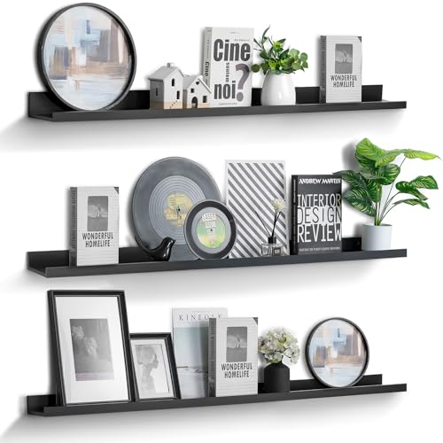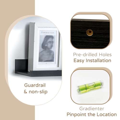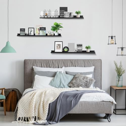 Walasis - ارفف طويلة عائمة للحائط 90 سم: رف اسود للحائط مع حافة - ارفف كتب صور مثبتة على الحائط لغرفة النوم من والاسيس