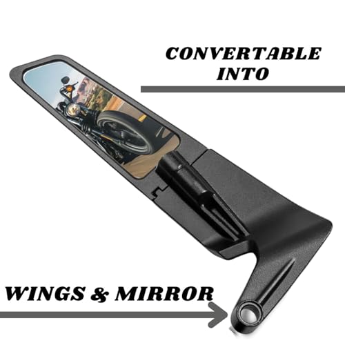 - تصميم أنيق قابل للتحويل: غيّر مظهر دراجتك مع الأجنحة والمرايا الجانبية السوداء الأنيقة، المصممة لسهولة التحويل لتناسب أي نمط ركوب أو تفضيلات.