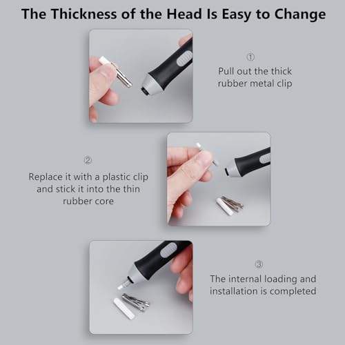 - يمكن لهذه الأستيكة الكهربائية المدمجة مسح مناطق صغيرة في العمل الفني بسرعة ودقة.