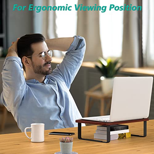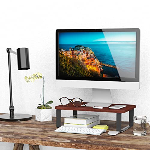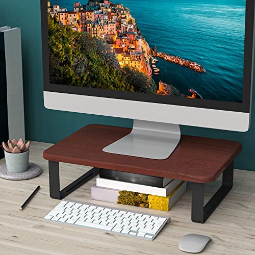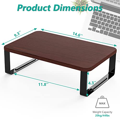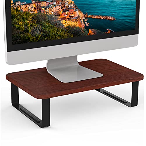 WALI - حامل رفع شاشة خشبي، حامل رافع شاشة مكتبي يتميز بحافة دائرية من الستيل، حامل مناسب للكمبيوتر واللاب توب والطابعة والنوت بوك وشاشة العرض المسطحة، (PTT006-R)، بني جوزي من والي