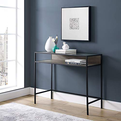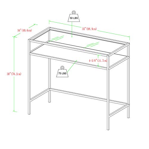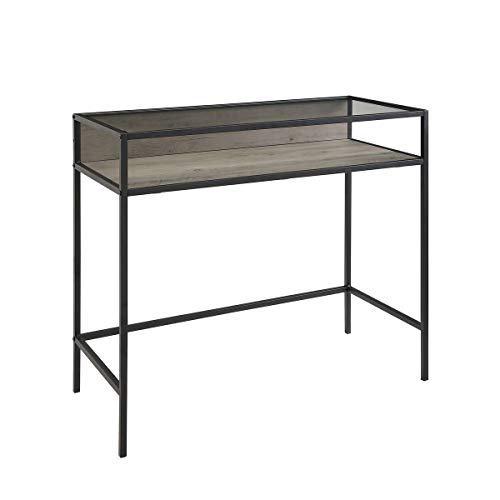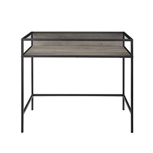 Walker Edison - ووكر اديسون فرنتشر كومباني مكتب صغير عصري من طبقتين بسطح زجاجي الستيل لون رمادي طول 35 انش × عرض 16 ارتفاع 30