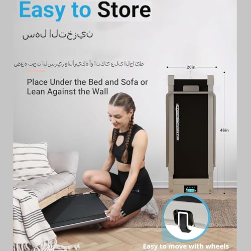 - 4. يصل جهاز المشي مع تجميع كامل بالفعل، ويمكن استخدامه مباشرة بعد فتح العلبة. توجد عجلات نقل بحيث يسهل تحريكها ووضعها تحت الأريكة أو الزاوية أو السرير لتوفير مساحة منزلك.
