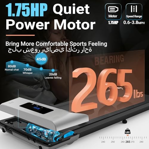 WAMIT - جهاز مشي 3 في 1 قابل للطي 3 في 1 بقوة 1.75 حصان للمكتب المنزلي، يمكنه حمل ما يصل الى 265 باوند بسرعة 1-6 كم/ساعة مع شاشة LED، مناسب للمكتب وغرفة المعيشة