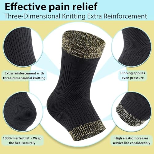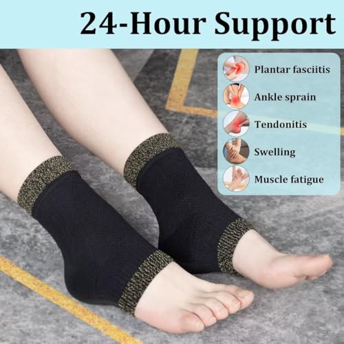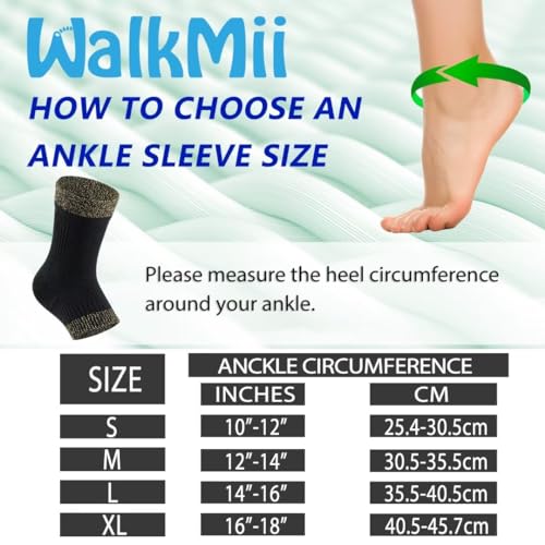 WalkMii - أكمام ضاغطة لدعم الكاحل مشبعة بالنحاس للرجال والنساء لتخفيف آلام القدم والتهاب اللفافة الأخمصية والتواء الكاحل والتهاب وتر العرقوب والتعافي للاستخدام النهاري أو الليلي من ووكمي، زوج، لارج (L)