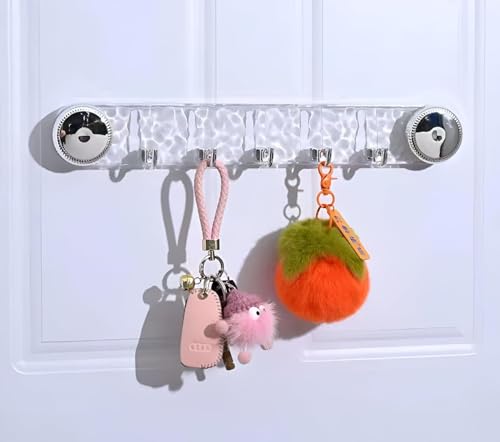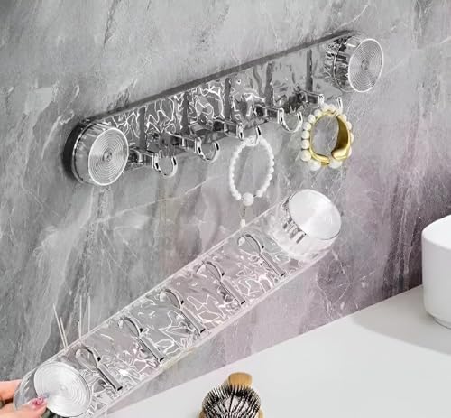 Generic - شماعة حائط و باب | شماعة متعددة الاستخدامات لتنظم أغراضك بسهولة بدون مسامير أو حفر أو لزق يتم لصقها عن طريق شفط الهواء | 5 خطافات متحركة بتصميم أنيق و زرار لشفط الهواء - لون شفاف