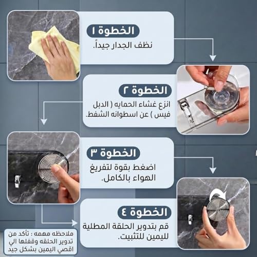- ✅ تركيب بلا أدوات: يتم تثبيتها عن طريق شفط الهواء هلف الشماعة من دون مسامير أو حفر، لا تسبب ضررًا للجدار أو الأسطح نظرًا لعدم الحاجة إلى مسامير أو ثقوب.