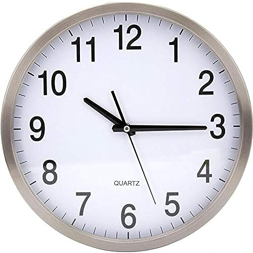 Other - ساعة حائط مع شاشة ميكانيكية - ابيض اطار فضي ستاينلس ستيل، تناظري