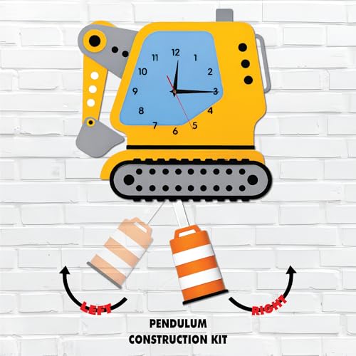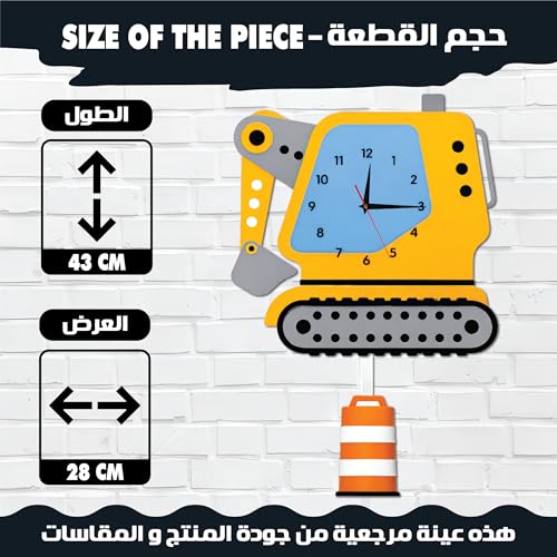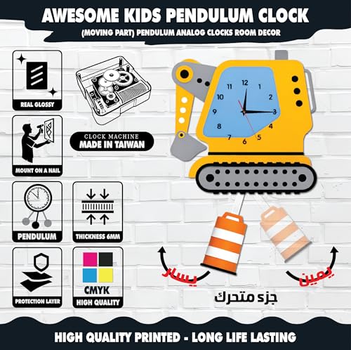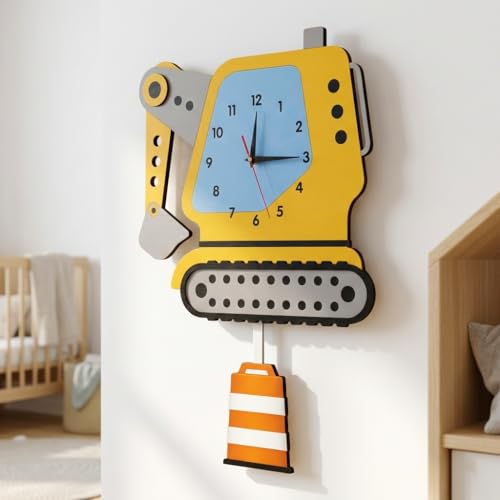 Generic - ساعة حائط ببندول متحرك بتصميم مبهج بشكل حفارة مع جزء متحرك، ألوان زاهية وجودة عالية، حركة هادئة بدون صوت، سهلة التعليق، تضيف لمسة ديكور جذابة