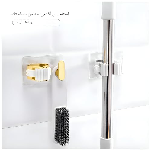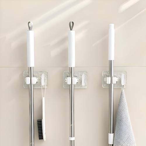 Generic - شماعة جدار، دعامة لاصقة مزدوجة الجوانب موثوقة لتخزين مساحة موب والمكنسة، تصميم شفاف كالكريستال، مزوّد بخطاف إضافي لحمل حلة الطهي أو الإسفنجة، لترتيب وتنظيف منظم وسهل الوصول إليه (قطعة واحدة)