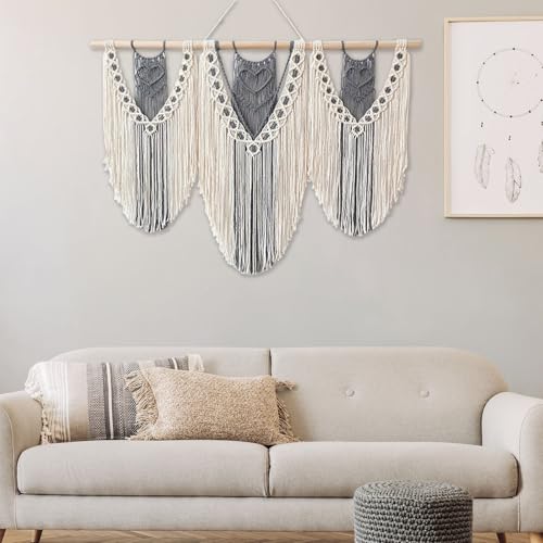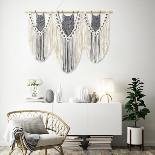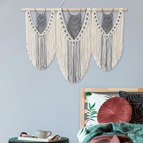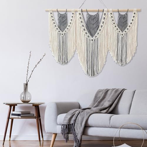 Hibisaws - ديكور بوهيمي معلق على الحائط منسوج بنمط بوهو لديكور المنزل الأنيق وتزيين الشقق وغرف النوم، مقاس 110 سم (عرض) × 82 سم (ارتفاع)، لتزيين الشرفات والجدران، رمادي